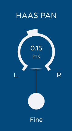 Haas Pan: Achieve the Haas effect with a simple knob! Delay one side of the stereo signal by a set amount of milliseconds. When the Fine mode is activated, the available range narrows from 0-30ms to 0-1ms, allowing for micro delay adjustments.
