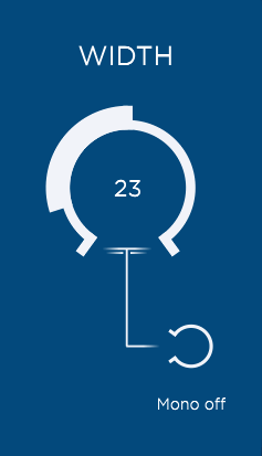 The width knob controls the stereo spread at the beginning of the processing chain, enabling you to fine tune the width into panning. The Mono Freq knob sums the signal to mono below the selected frequency, providing additional control over the stereo image.